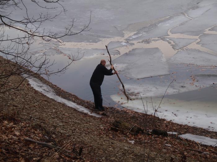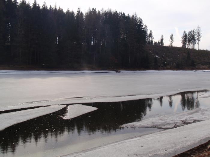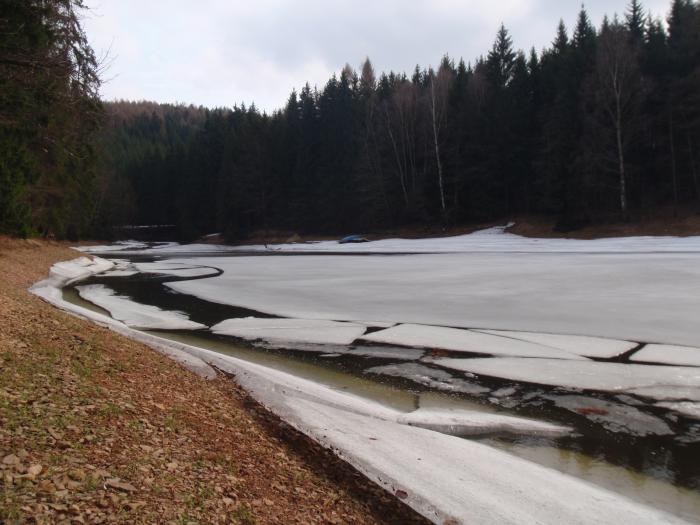 Přehrada byla ještě z části zamrzlá Martinův foťák do extrémních podmínek přežil i ´procházku po zemi´a fotil skvěle Pohled od vody na cestu