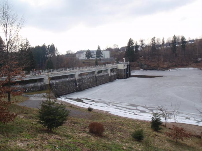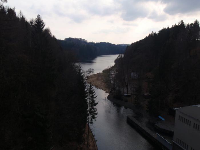 Hráz brzy na jaře Trošku jsme prostudovali mapku a šli po druhém břehu dál Fascinující pohled na hráz...