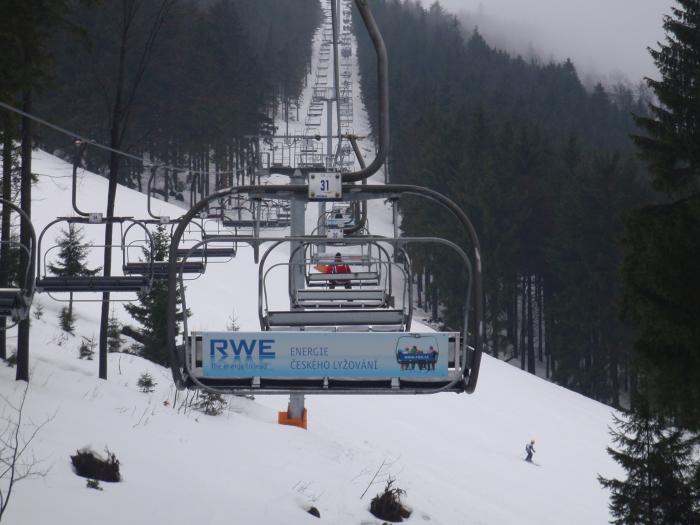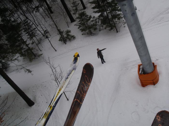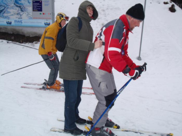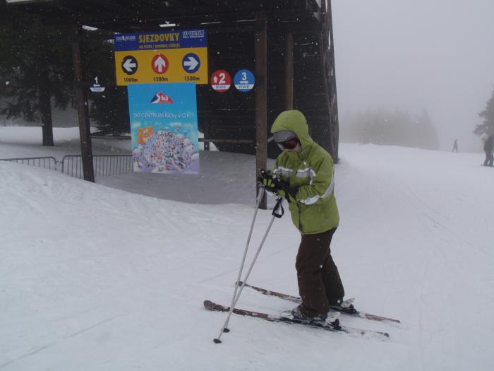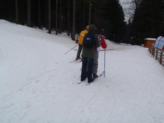 U lanovky bez čekání, to se jezdilo! Přeci nepůjdu po svých, když má Jirka lyže dvě... ...no vidíš jak nám to jede...