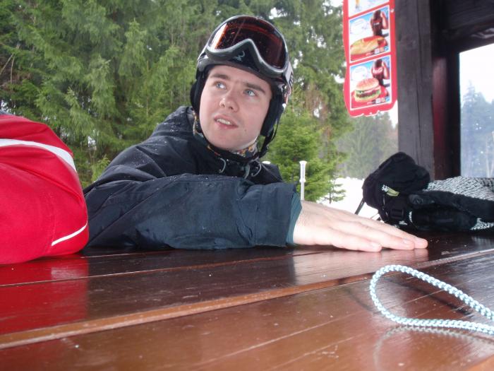 Jirka po týdnu v Dolomitech místní úpravu sněhu neocenil... ...ale párek tady měli bezkonkurenčně lepší! Nějak jsem z toho záběru nestihl odjet...