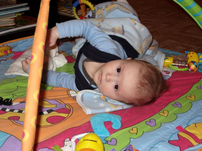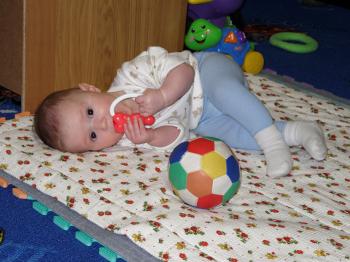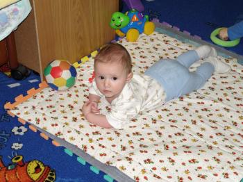 18.1.2012 - Vojta (4,5měsíce) se začal otáčet na bříško. Už se válí až doprostřed obýváku, tak přidávám pár fotek :D Je s ním sranda...